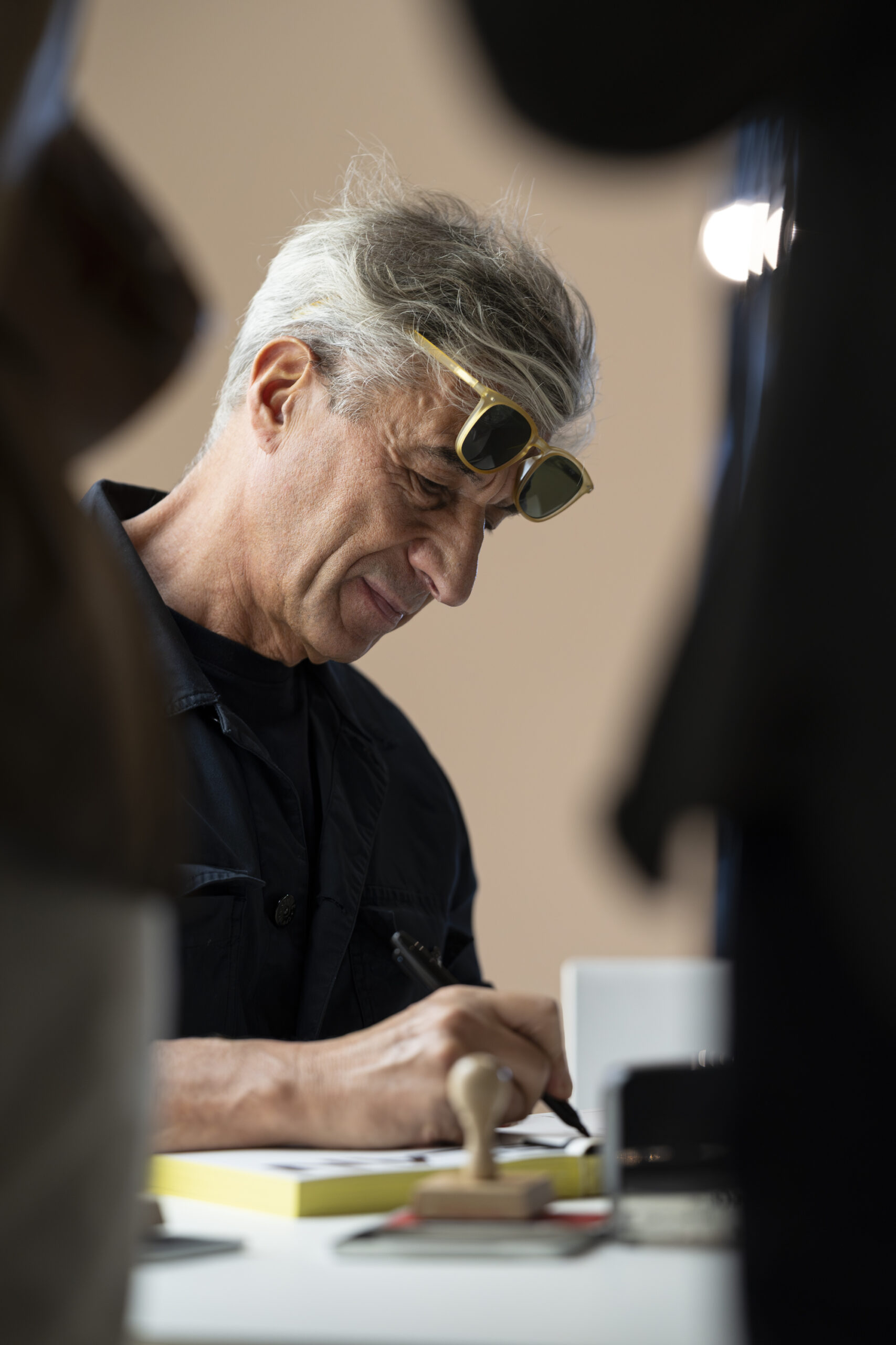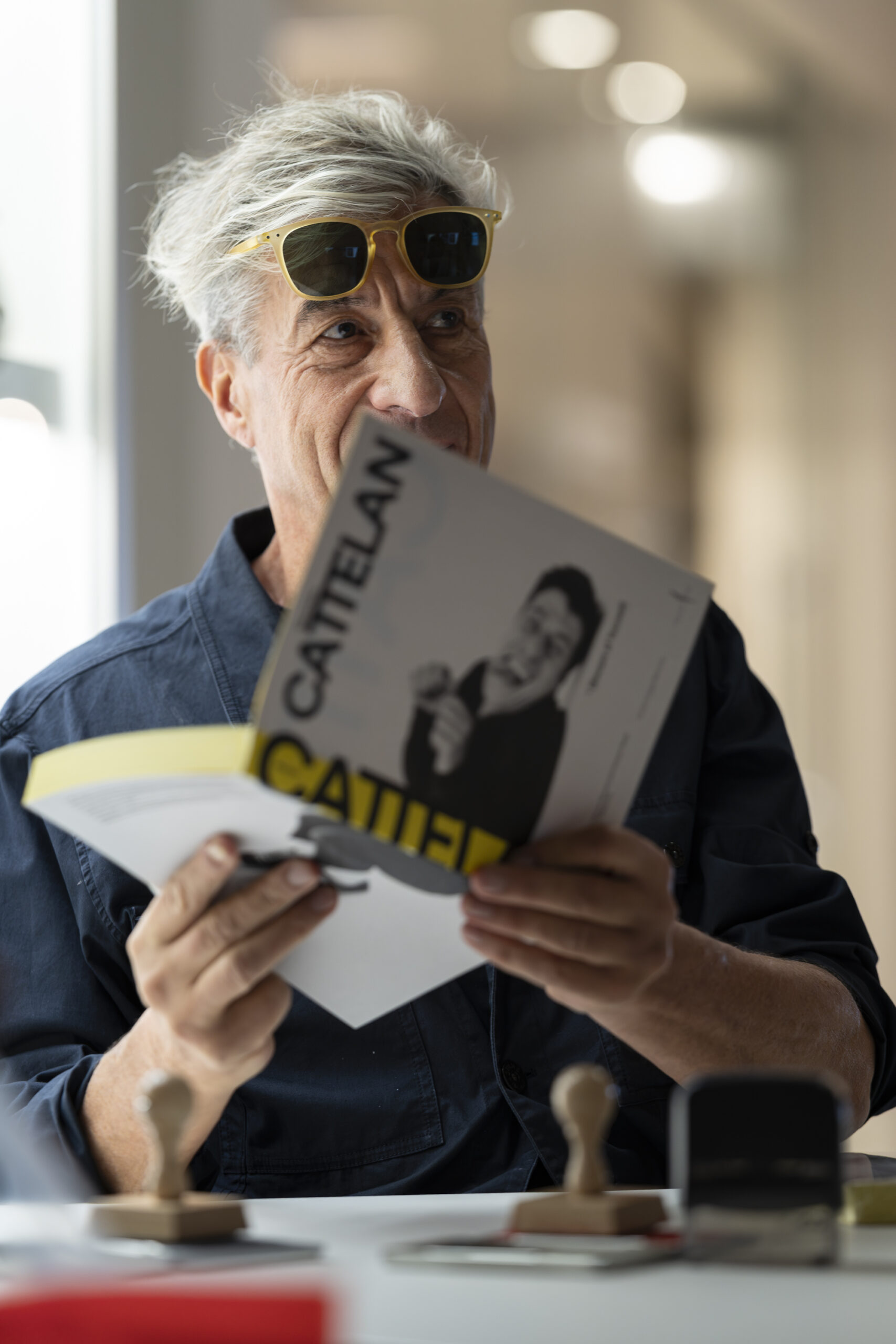 Maurizio Cattelan durante il firmacopie di Beware of Yourself, Pirelli HangarBicocca, Milano 2025. Photo Lorenzo Palmieri