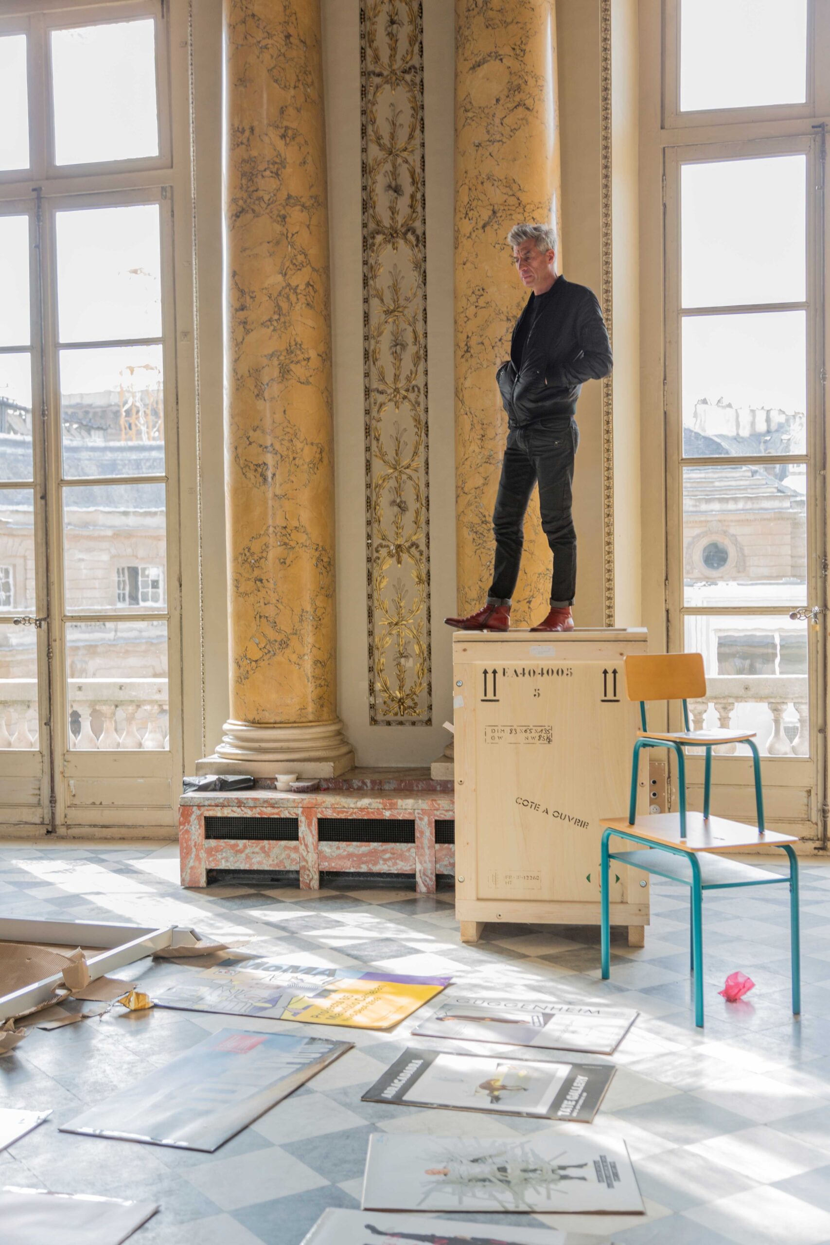 Maurizio Catelan ritratto da Zeno Zotti alla Monnaie de Paris durante l’allestimento della sua mostra Not Afraid of Love, 8 ottobre 2016. Photo Zeno Zotti. Pagina 225 del volume