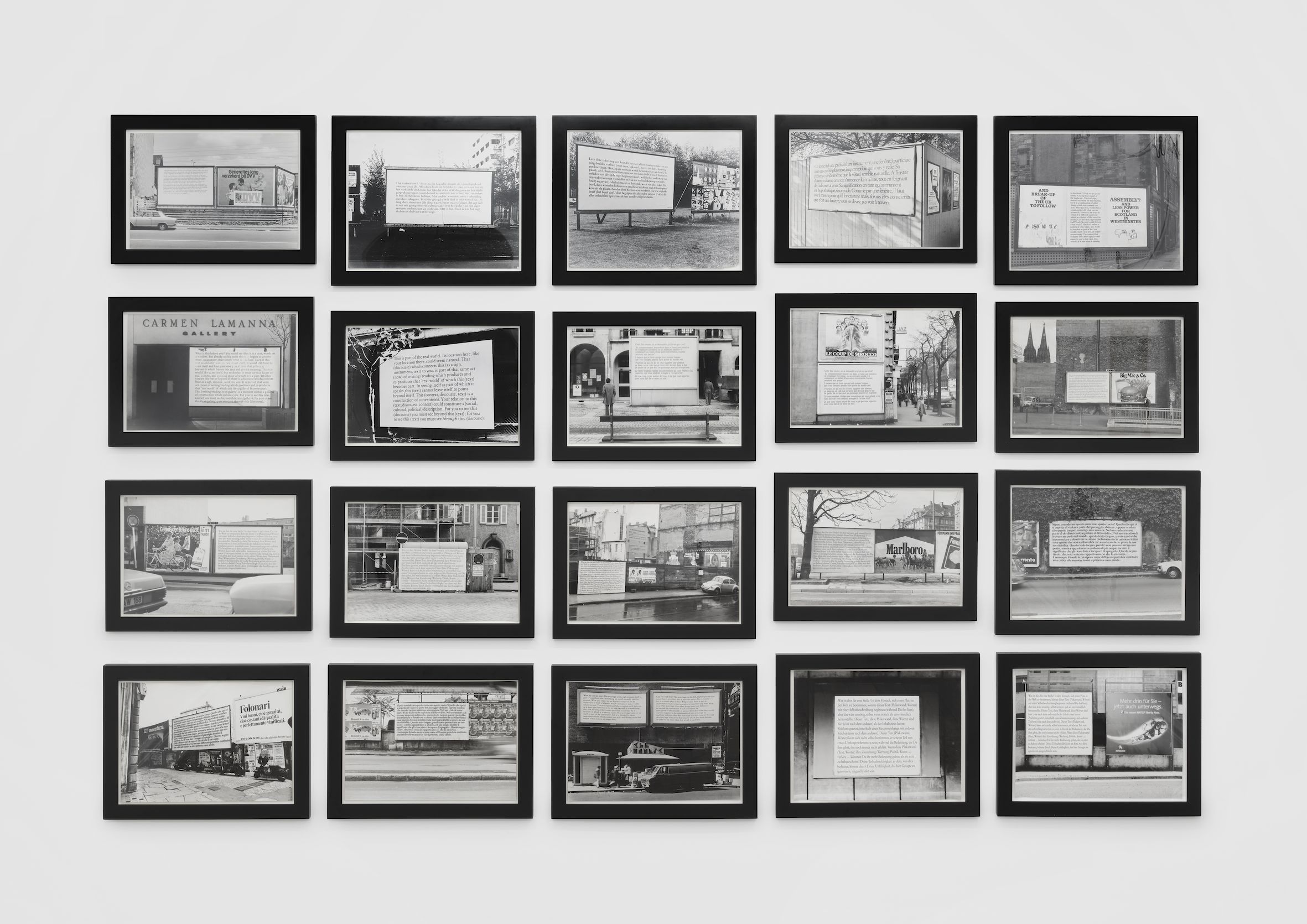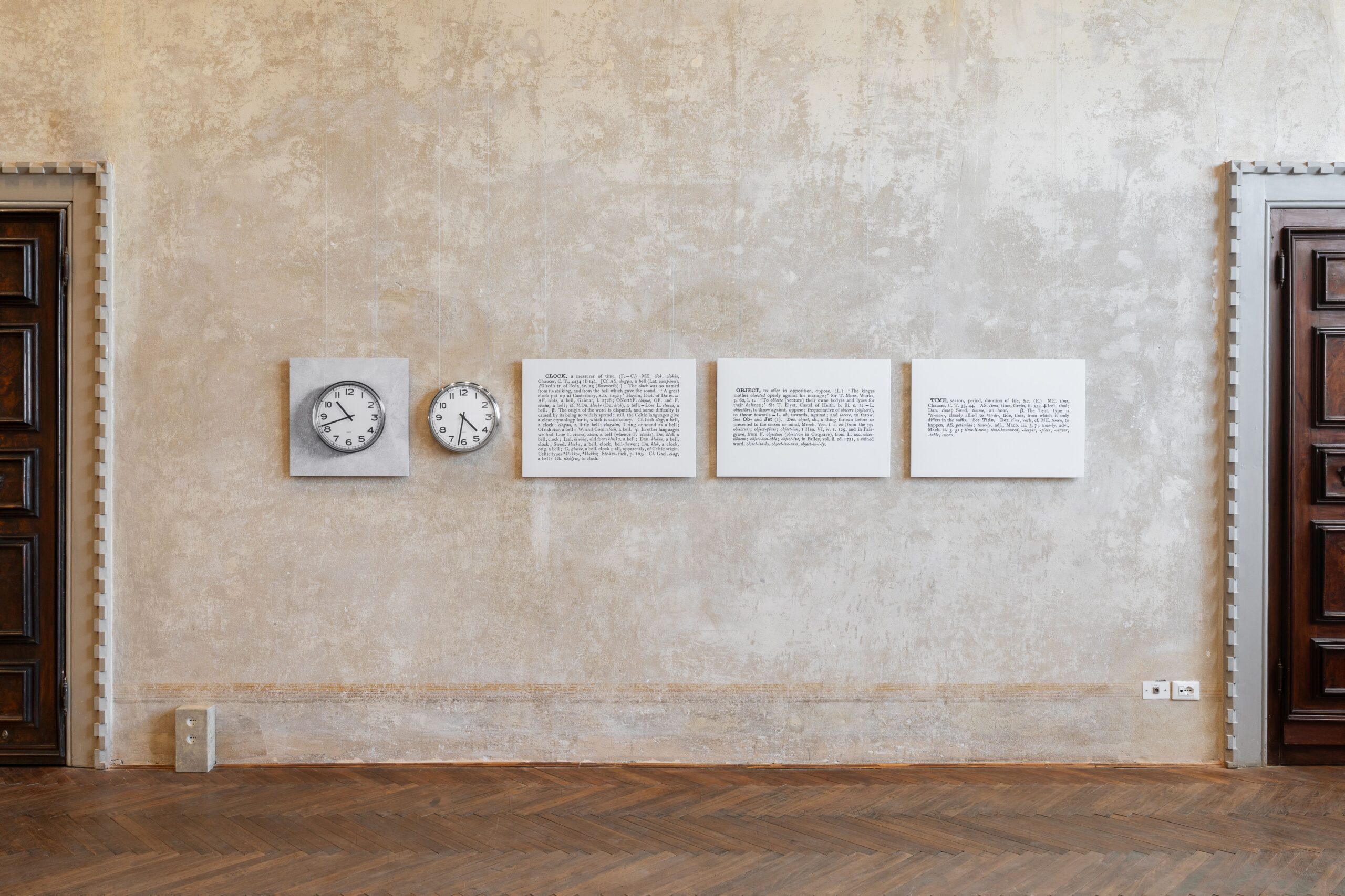 Maurizio Cattelan: Joseph, hai riempito l’androne della Casa dei Tre Oci con un testo di Michel Foucault che parla di “somiglianze” e “convenienze”. Ma se, come suggerisce il titolo della mostra (The-Exchange-Value-of-Language-Has-Fallen-To-Zero), il valore di scambio del linguaggio è sceso a zero, non sarebbe stato più coerente lasciare le pareti completamente bianche?