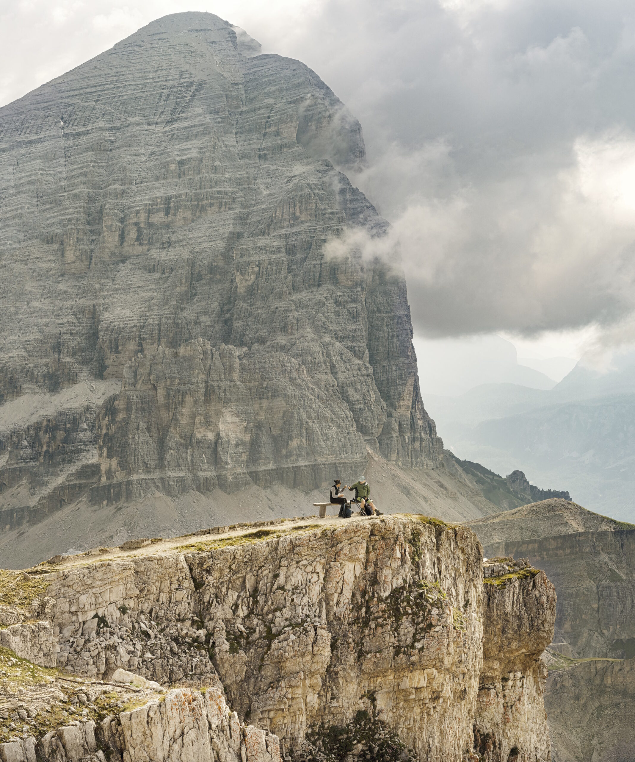 Nel mezzo dell’Europa pianeggiante c’è la grande discontinuità delle Alpi, come se mani giganti avessero impastato, arrotolato, raggrumato le pianure circostanti più e più volte fino a elevare le vette rocciose. All’interno delle Alpi c’è il patrimonio mondiale dell’umanità, le Dolomiti, una materia lavorata nel corso di centinaia di milioni d’anni, su un basamento di porfido dove mani ciclopiche – proprio come su un bancone da lavoro – hanno steso, mescolato, compresso gli elementi della Terra primordiale: calcari, arenarie, gessi e carbonati di calcio; le sostanze minerali amalgamate con quelle organiche figlie del mare salato, caldo e poco profondo – la primigenia fabbrica di vita costituita da batteri, alghe, molluschi, spugne, coralli, conchiglie – che ha edificato, strato su strato, piattaforme, scogliere e isole che oggi sono il profilo delle Dolomiti.