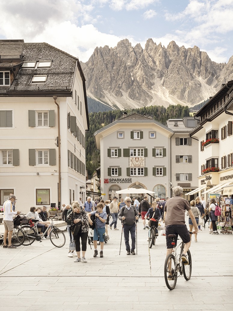 Una tappa sulla terrazza della torre della Gardona per guardare di sotto e indietro nel tempo, per vedere un’altra stratificazione: le linee d’intreccio, di passaggio, la storia delle genti, del lavoro. Una sosta, un respiro profondo, prima di riprendere la via delle Dolomiti, per essere poi pronti al bosco, alla prateria alpina, al viàz, alla cengia, alla forcella, alla parete. Alla vetta. Arrivandoci per gradi, salendo piano, col giusto tempo, potremmo provare ad avvertire il magnetismo vertiginoso che ci rende parte di quel mondo che si erge davanti a noi e viene da lontano, dal principio del pianeta: è stato eroso, modellato, e prima di noi è stato visto, camminato, vissuto dalle popolazioni preistoriche e storiche, dalle genti di passaggio, che si sono poi raccolte nei villaggi alpini sviluppatisi ai loro piedi.