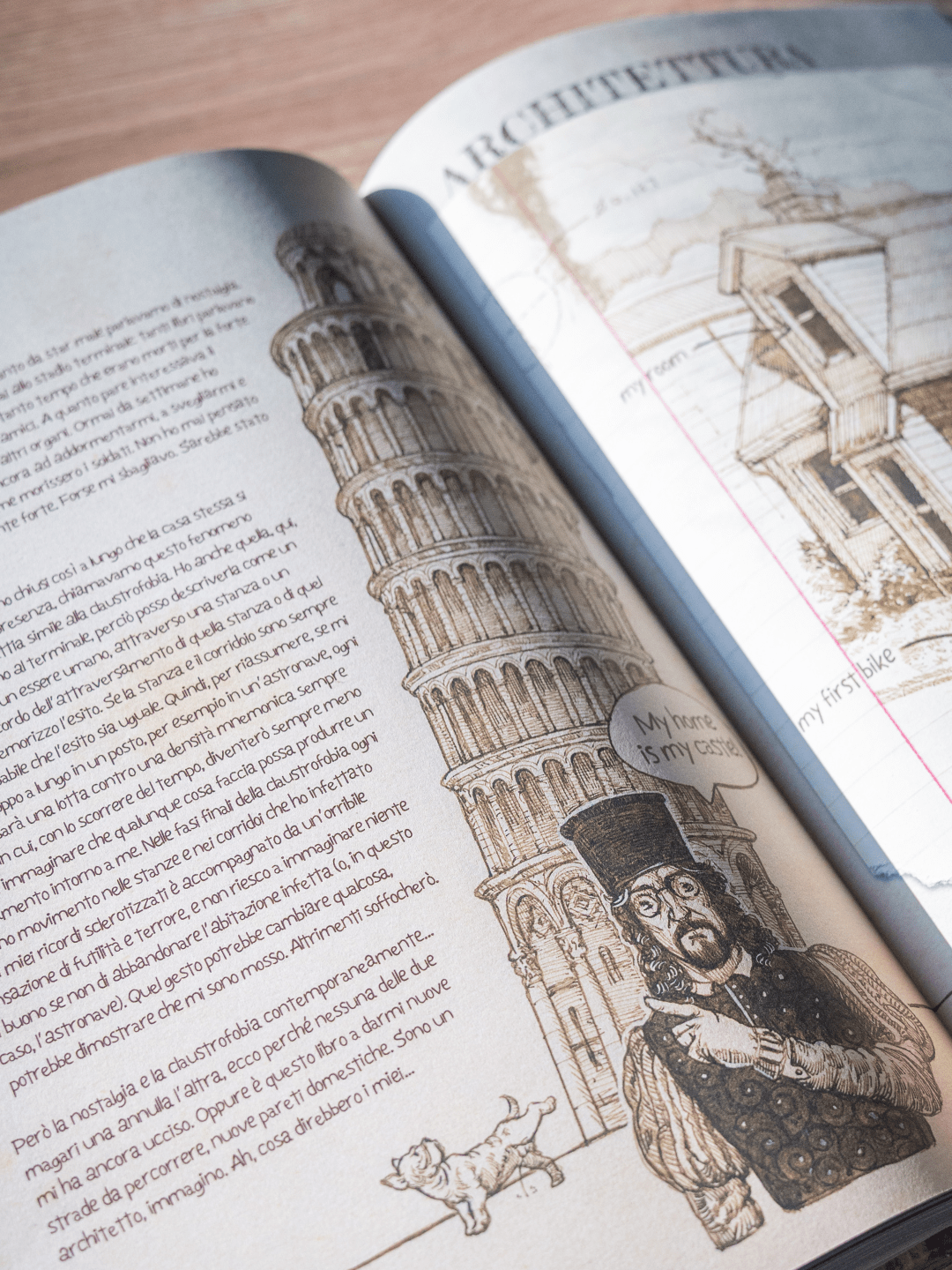 Infine, l’incredibile immagine de Il nuovo enciclopedista mette in scena l’istinto umano di catalogare tutto: un diario-enciclopedia illustrato per raccontare agli alieni chi eravamo, tra poesia e autoironia.